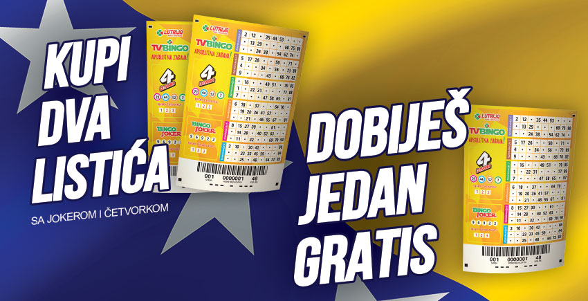 Od 21. do 25. novembra, u objektima Lutrije BiH, kupite dva žuta TV Bingo listića sa Jokerom i četvorkom, a treći listić Lutrija BiH poklanja – GRATIS!