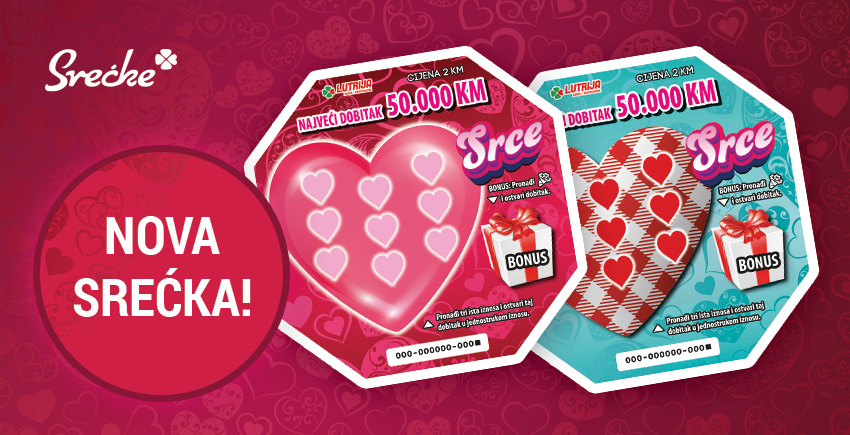 Od 13. februara 2026. godine u prodaji je nova srećka SRCE koja igračima nudi mogućnost ostvarivanja dobitka od 50.000,00 KM. Srećka SRCE na sebi ima dvije igre a dobitak je moguće ostvariti u bilo kojoj od igara.